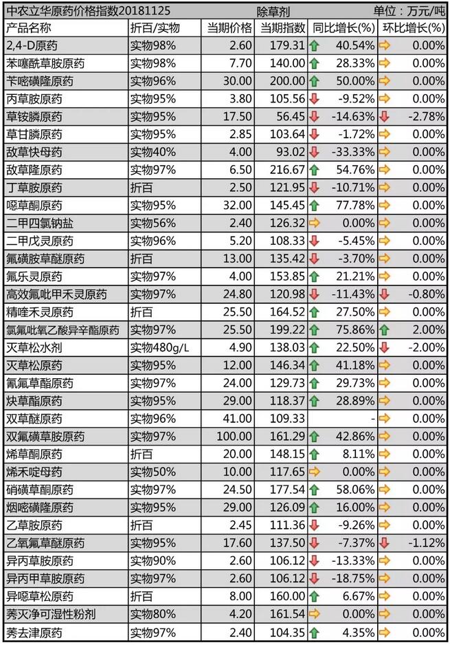 11月中旬國(guó)內(nèi)農(nóng)藥原藥除草劑價(jià)格走勢(shì)