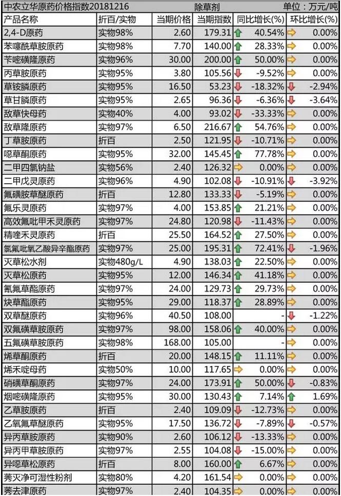 12月中旬國(guó)內(nèi)農(nóng)藥原藥除草劑價(jià)格走勢(shì)