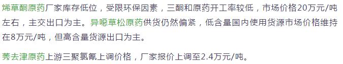 多款原藥貨源緊張價(jià)格提升