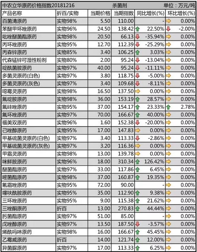11月底國(guó)內(nèi)農(nóng)藥原藥殺菌劑價(jià)格走勢(shì)