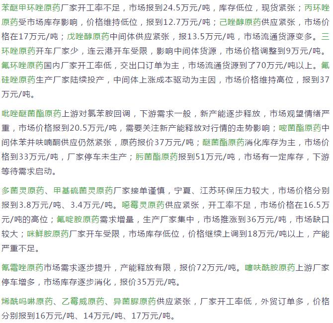 多款原藥貨源緊張價(jià)格提升