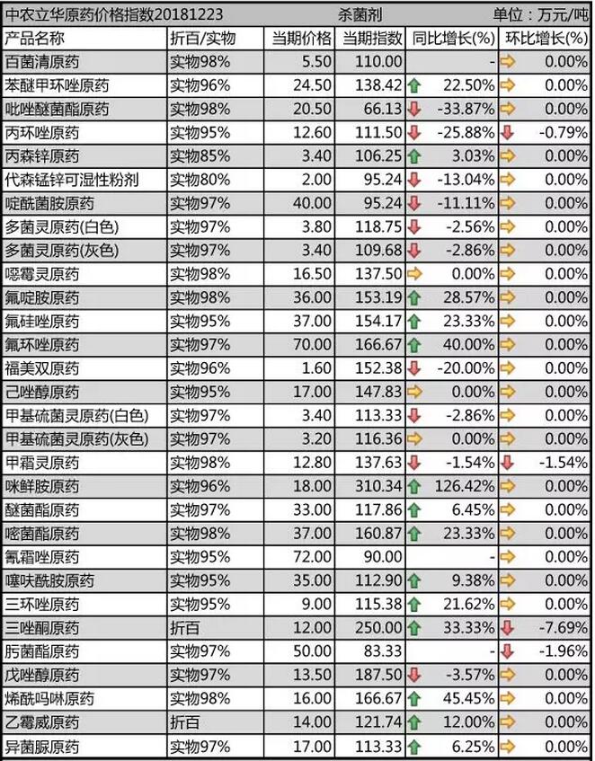 12月末國內(nèi)農(nóng)藥原藥殺菌劑價(jià)格走勢