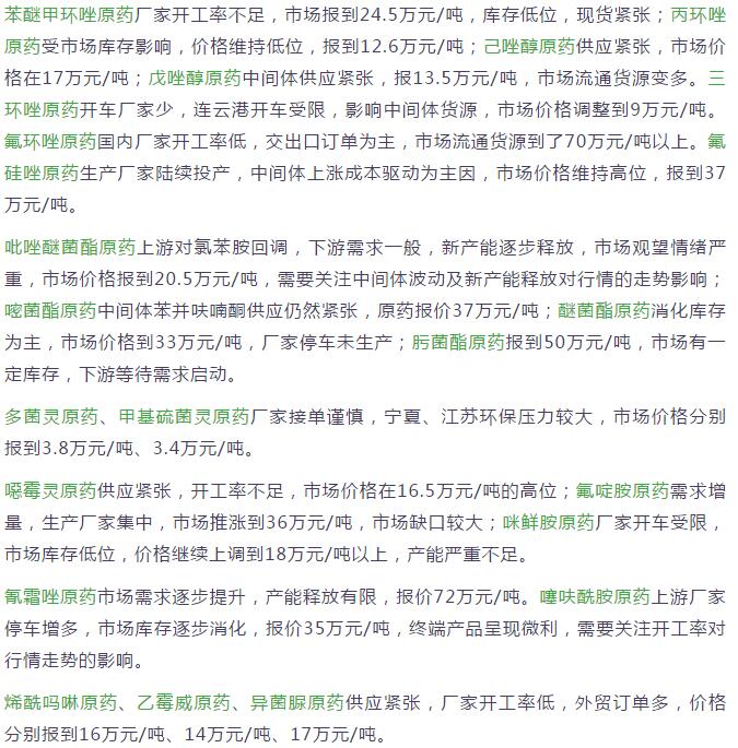 國內(nèi)化肥農(nóng)藥出廠價(jià)格