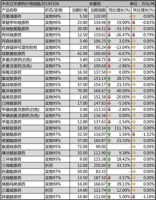 19年1月上旬國(guó)內(nèi)農(nóng)藥原藥殺菌劑價(jià)格走勢(shì)