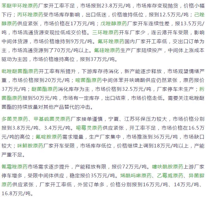 多款原藥貨源緊張價(jià)格提升