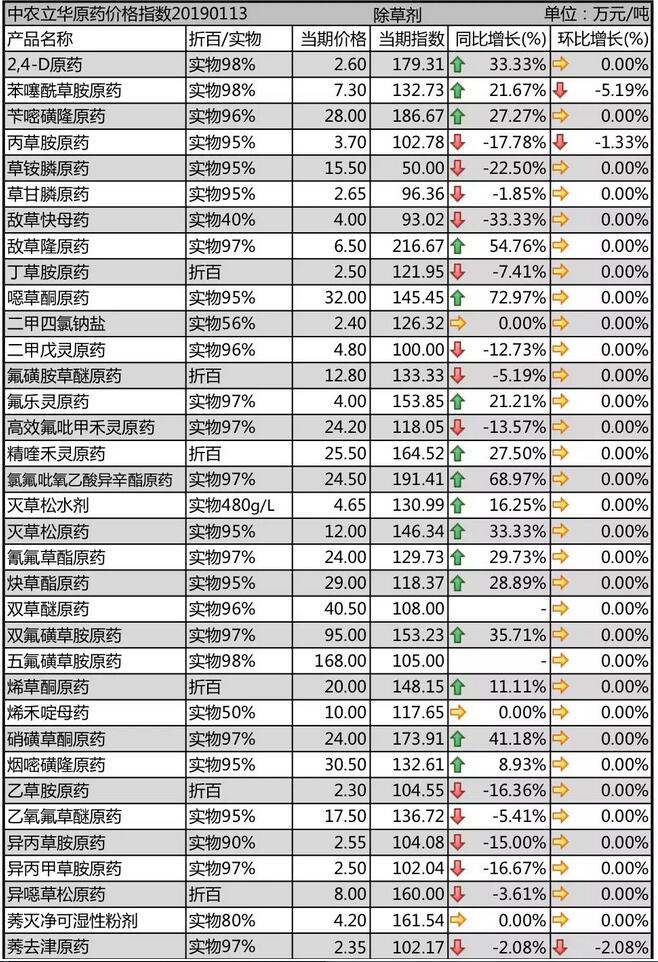 19年1月中旬國(guó)內(nèi)農(nóng)藥原藥除草劑價(jià)格走勢(shì)