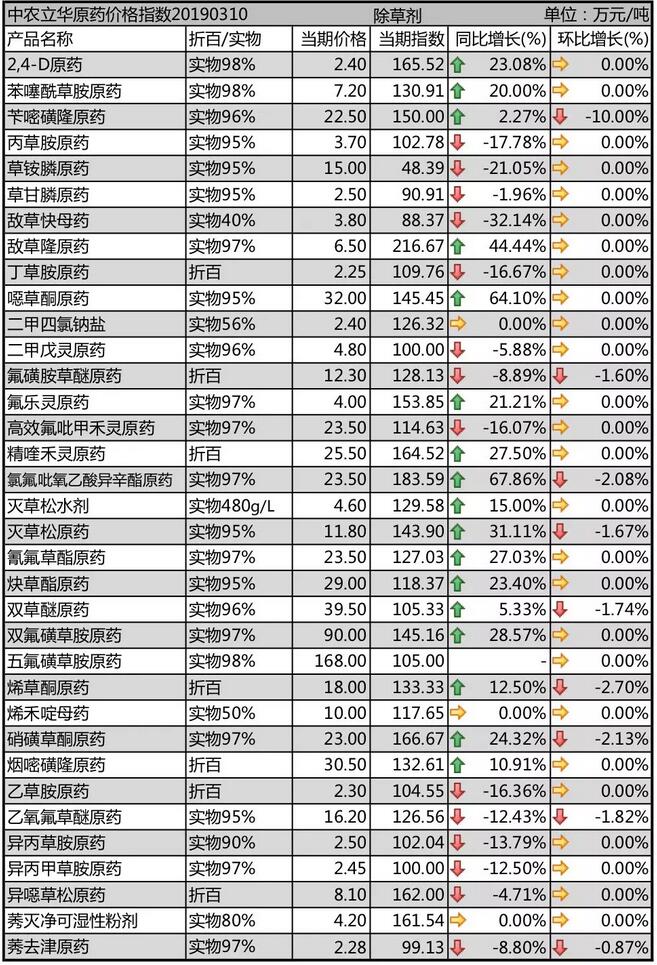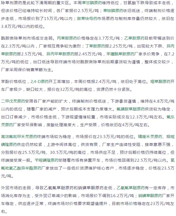 19年3月中旬國內農藥原藥除草劑價格走勢