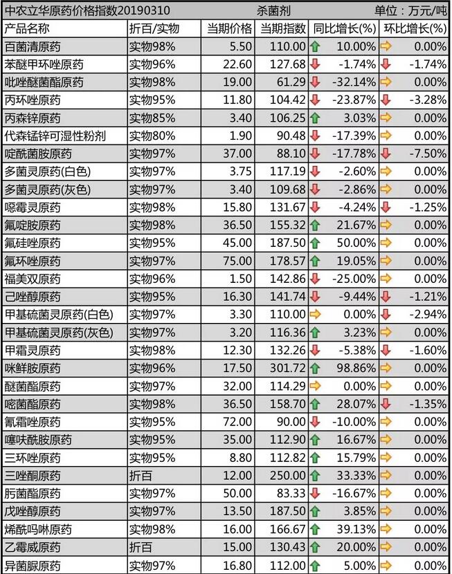 19年3月上旬國(guó)內(nèi)農(nóng)藥原藥殺菌劑價(jià)格走勢(shì)
