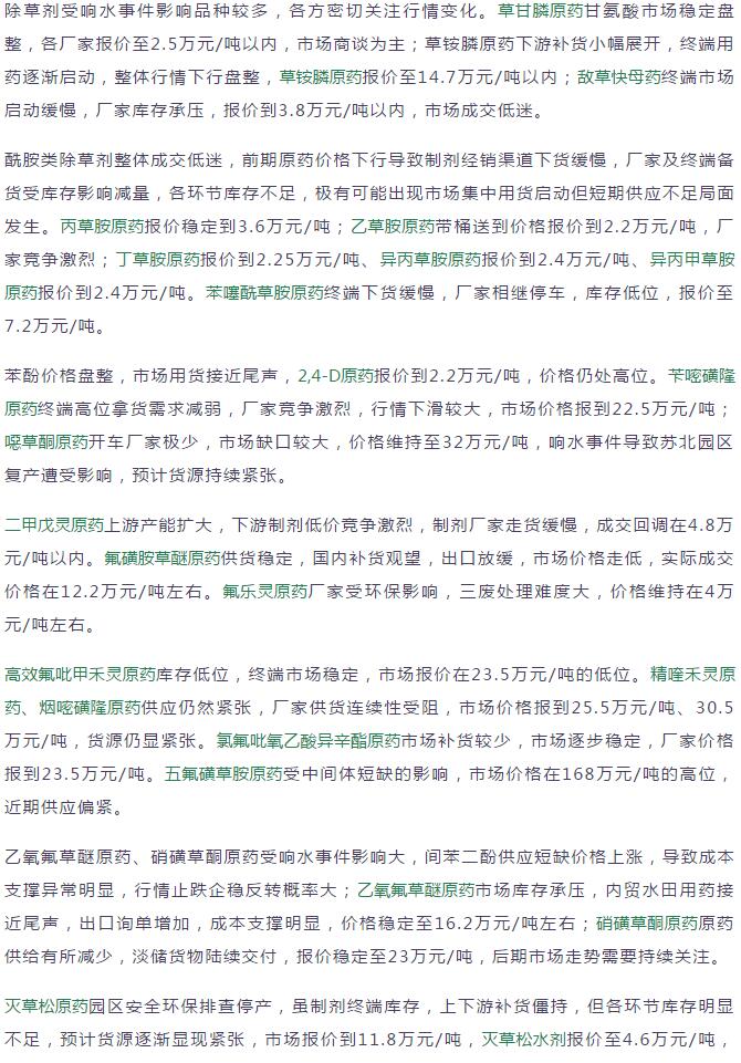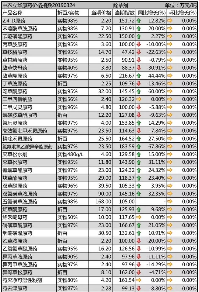 19年3月中旬國(guó)內(nèi)農(nóng)藥原藥除草劑價(jià)格走勢(shì)