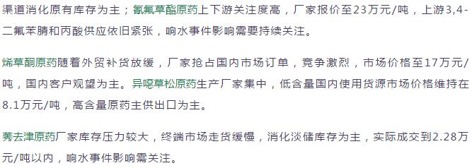 多款原藥貨源緊張價(jià)格提升