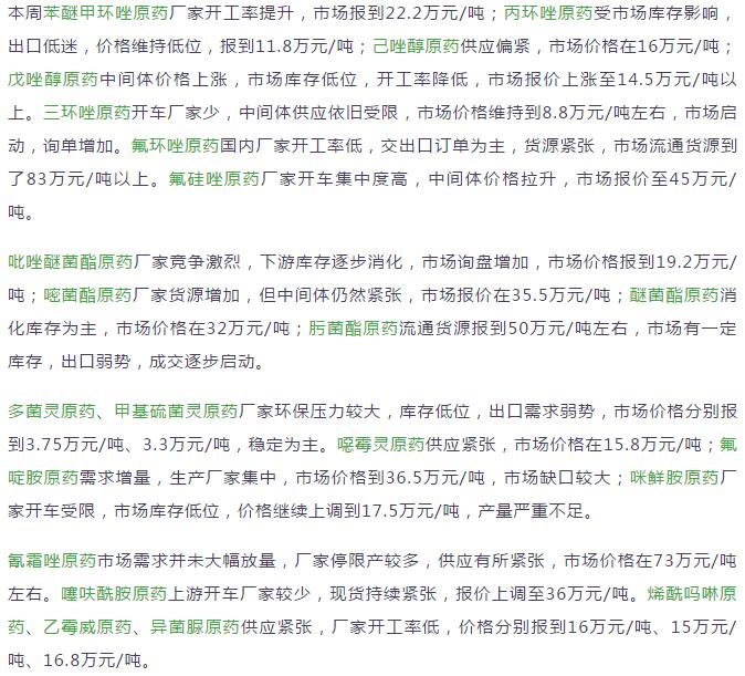 多款原藥貨源緊張價(jià)格提升