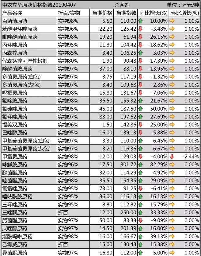 19年4月上旬國(guó)內(nèi)農(nóng)藥原藥殺菌劑價(jià)格走勢(shì)