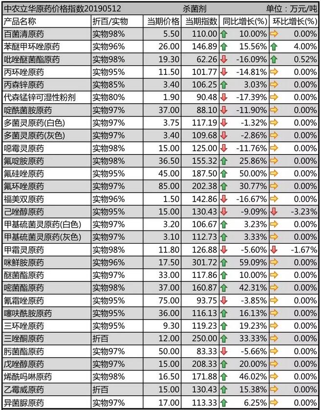 2019年5月初國內(nèi)農(nóng)藥原藥殺菌劑價格走勢