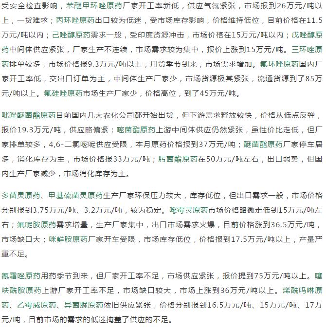 2019年5月中旬國內(nèi)農(nóng)藥原藥殺菌劑價格走勢