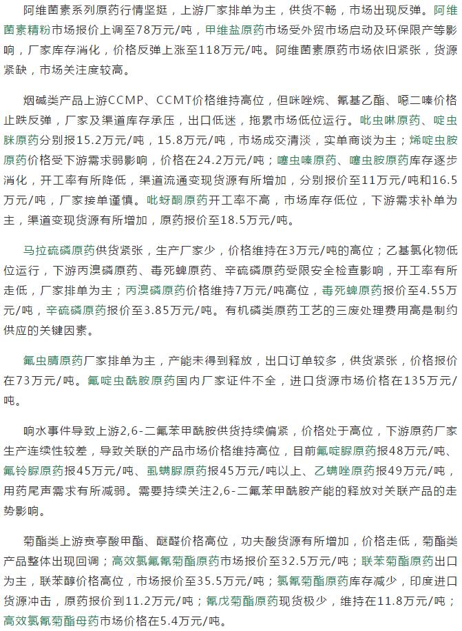 多款原藥貨源緊張價(jià)格提升