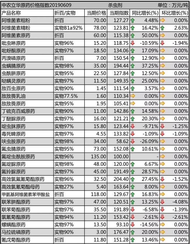 19年6月上旬國(guó)內(nèi)農(nóng)藥原藥殺蟲(chóng)劑價(jià)格走勢(shì)