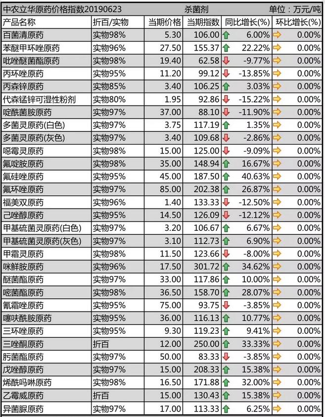 19年6月下旬國內(nèi)農(nóng)藥原藥殺菌劑價格走勢