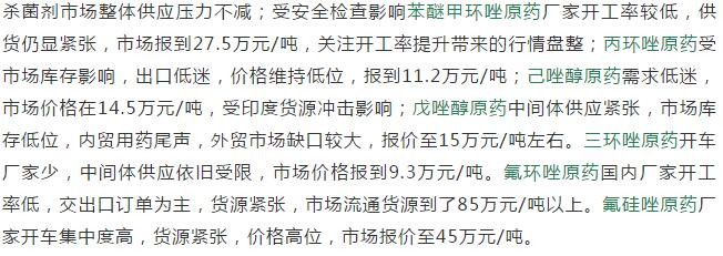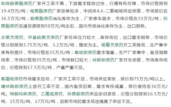 多款原藥貨源緊張價格提升