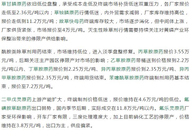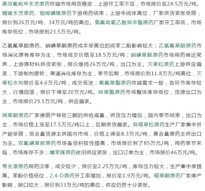 19年6月中旬國內(nèi)農(nóng)藥原藥除草劑價(jià)格走勢