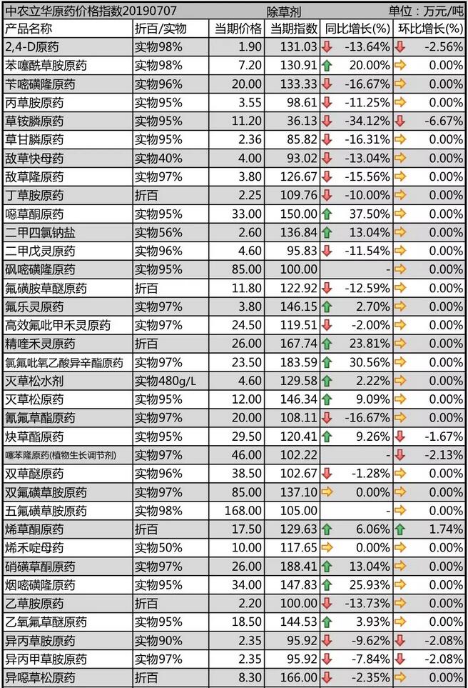 19年6月下旬國內(nèi)農(nóng)藥原藥除草劑價(jià)格走勢