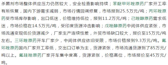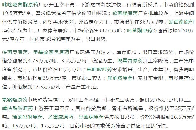 多款原藥貨源緊張價(jià)格提升