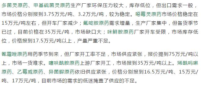 19年6月下旬國內(nèi)農(nóng)藥原藥殺菌劑價格走勢