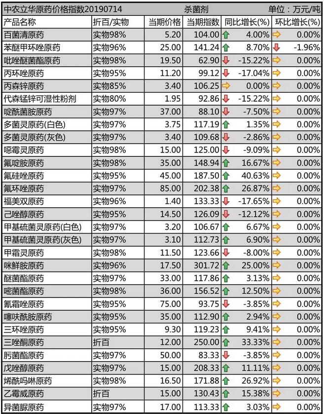 19年7月中旬國內(nèi)農(nóng)藥市場殺菌劑價格走勢