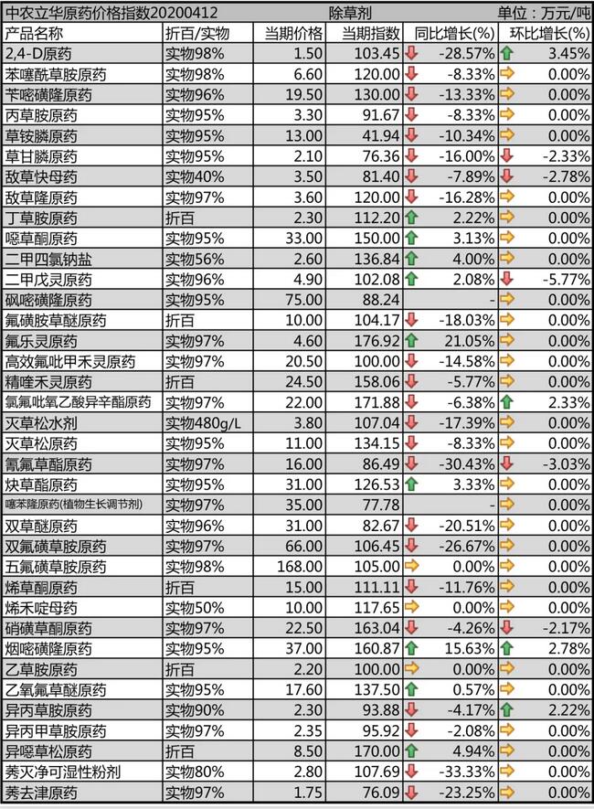 2,4-D原藥庫(kù)存減少,廠家排單增多,受印度方面影響,本月價(jià)格上調(diào)1.5萬(wàn)元/噸。噁草酮原藥開車廠家極少,出口訂單缺口較大,報(bào)價(jià)在33萬(wàn)元/噸的高位,供應(yīng)仍然十分緊張。莠去津原藥備貨展開,廠家?guī)齑孑^大,報(bào)價(jià)下調(diào)至1.75萬(wàn)元/噸。