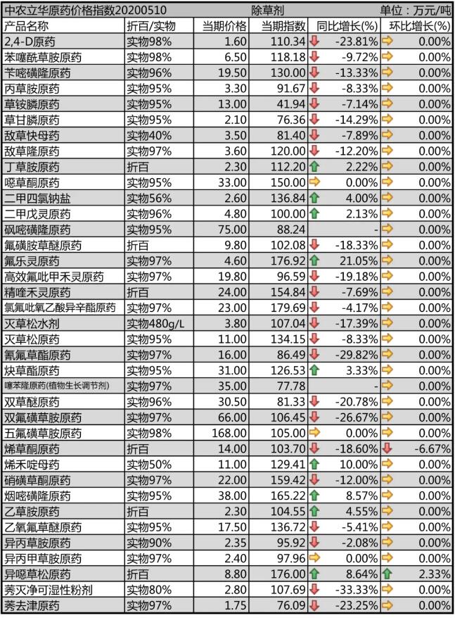 高效氟吡甲禾靈原藥終端需求一般,出口為主,市場有庫存,報價到19.8萬元/噸。精喹禾靈原藥開工率提升,有廠家新增產(chǎn)能,出口仍舊弱勢,市場報價在24萬元/噸;煙嘧磺隆原藥廠家無力接單,供應(yīng)十分緊張,庫存偏低,報價上調(diào)到38萬元/噸,渠道一貨難求,價格更高;氯氟吡氧乙酸異辛酯原藥庫存低位,開工率偏低,廠家期貨排單為主,市場有所上漲,報價到23萬元/噸。