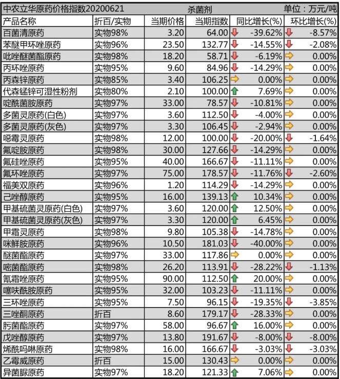 多菌靈原藥、甲基硫菌靈原藥生產(chǎn)廠家環(huán)保壓力較大,開工率一般,市場(chǎng)報(bào)價(jià)3.6萬元/噸;噁霉靈原藥市場(chǎng)價(jià)格報(bào)到12.2萬元/噸,近期貨源偏緊,市場(chǎng)需求提升;氟啶胺原藥生產(chǎn)廠家集中,備貨季節(jié)到來,市場(chǎng)消化庫(kù)存為主,報(bào)價(jià)30萬元/噸;咪鮮胺原藥開工率提升,市場(chǎng)需求旺季已過,競(jìng)爭(zhēng)加劇,市場(chǎng)價(jià)格殺跌報(bào)到10.5萬元/噸。