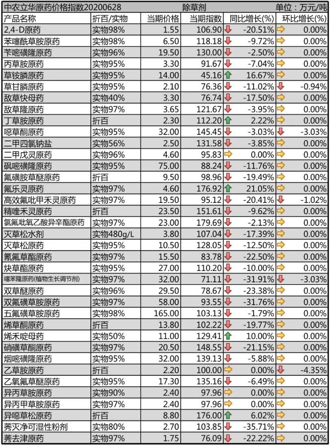 2,4-D原藥庫存減少,廠家排單增多,本月價(jià)格穩(wěn)定在1.55萬元/噸;噁草酮原藥開工廠家極少,出口訂單缺口較大,報(bào)價(jià)處于32萬元/噸的高位,供應(yīng)仍然十分緊張;莠去津原藥廠家?guī)齑孑^大,報(bào)價(jià)1.75萬元/噸。