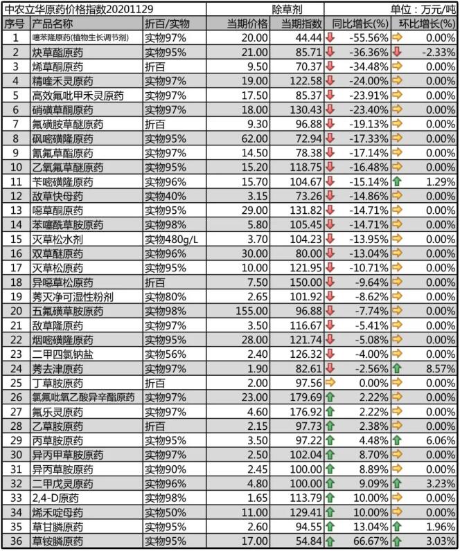 2,4-D原藥開(kāi)工率平穩(wěn),但基礎(chǔ)原材料上漲,帶動(dòng)了成本上行,各廠家謹(jǐn)慎報(bào)價(jià),本月價(jià)格報(bào)到1.65萬(wàn)元/噸。噁草酮原藥開(kāi)工廠家增多,出口為主,報(bào)價(jià)穩(wěn)定在29萬(wàn)元/噸,但供貨還是存在不確定性。莠去津原藥受液氯大幅上漲的影響,各廠家上調(diào)報(bào)價(jià)至1.9萬(wàn)元/噸。