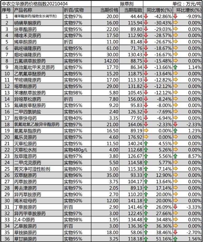 2,4-D原藥基礎(chǔ)原材料上漲,帶動(dòng)了成本上行,各廠(chǎng)家謹(jǐn)慎報(bào)價(jià),價(jià)格報(bào)到1.95萬(wàn)元/噸,排單為主。噁草酮原藥開(kāi)工廠(chǎng)家增多,出口為主,報(bào)價(jià)穩(wěn)定在29萬(wàn)元/噸,但供應(yīng)存在不穩(wěn)定性;莠去津原藥受原材料大幅上漲的影響,各廠(chǎng)家上調(diào)報(bào)價(jià)至2.05萬(wàn)元/噸,供貨緊張。
