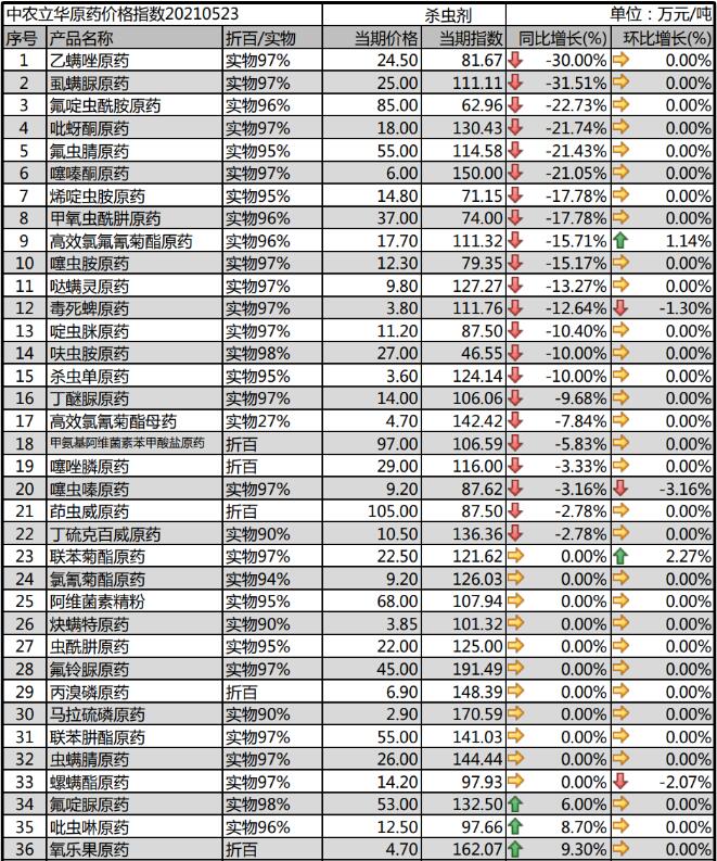 噠螨靈原藥供應(yīng)穩(wěn)定,報價9.8萬元/噸;螺螨酯原藥廠家排單為主,價格到14.2萬元/噸;炔螨特原藥報價到了3.85萬元/噸;茚蟲威原藥市場價格在105萬元/噸。