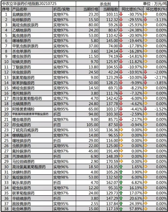 噠螨靈原藥供應(yīng)穩(wěn)定,報價9.7萬元/噸;螺螨酯原藥市場流通價格報14萬元/噸,供應(yīng)穩(wěn)定;炔螨特原藥市場需求一般,但庫存消化,市場報價到4萬元/噸;茚蟲威原藥需求啟動,開工率偏低,市場庫存低位,目前價格穩(wěn)定在105萬元/噸。