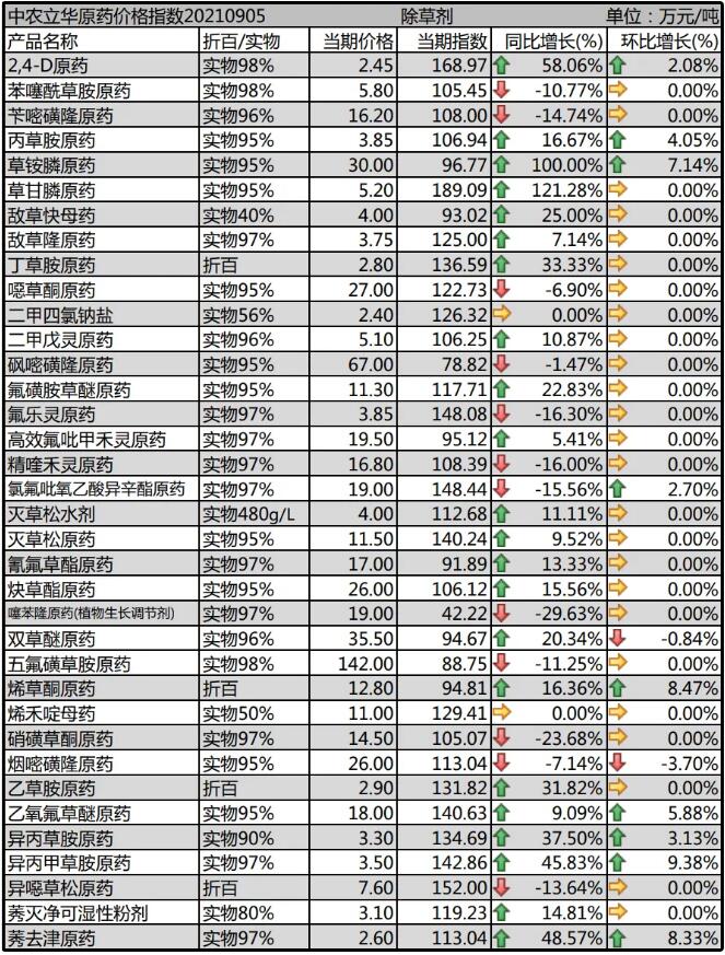 二甲戊靈原藥目前進入用藥淡季,但原材料在高位,出口訂單不斷,庫存低位,報5.1萬元/噸;氟磺胺草醚原藥進入市場淡季,庫存低位,出口為主,國內(nèi)備貨逐步啟動,市場報到11.3萬元/噸。