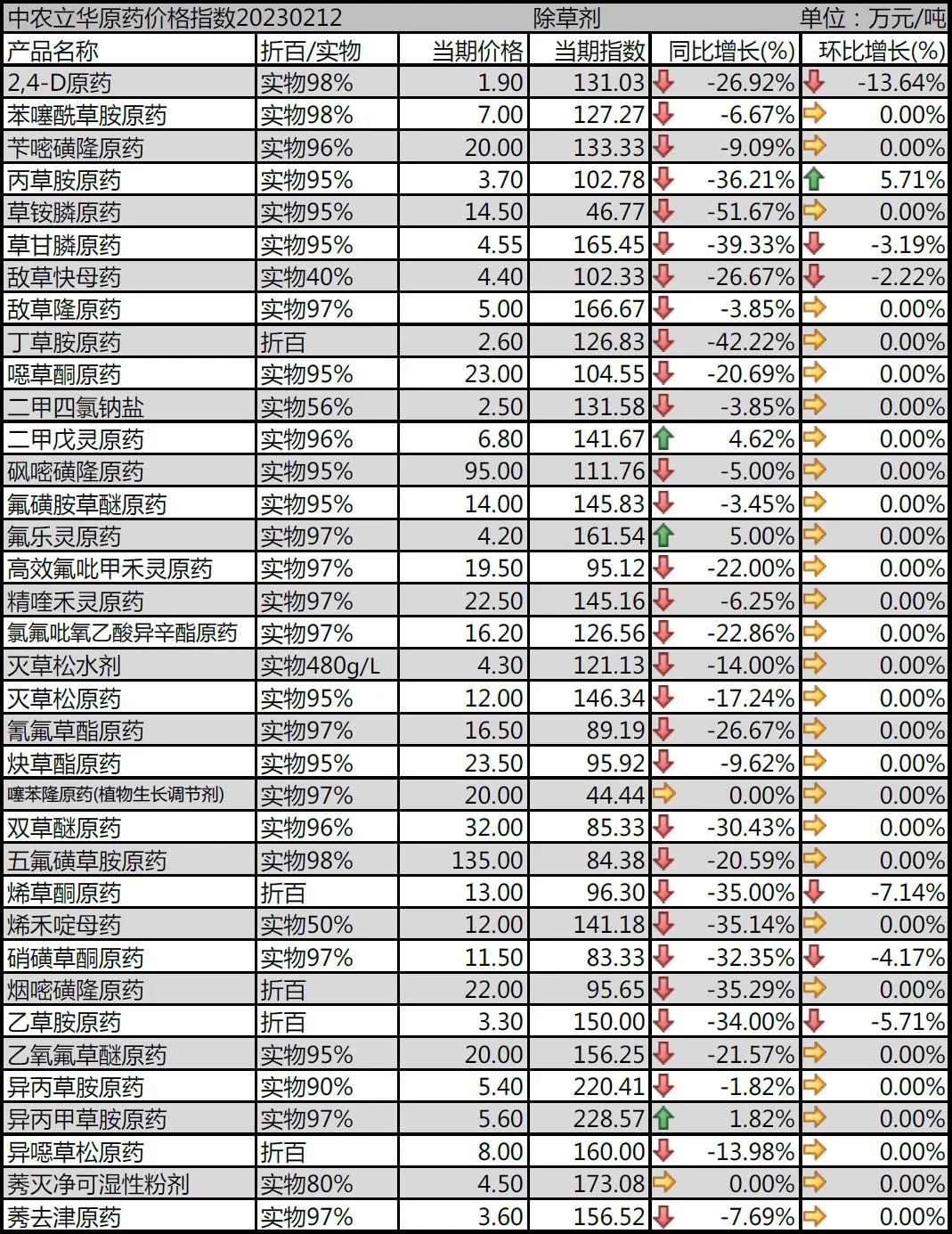 噻苯隆原藥市場報(bào)價(jià)20萬元/噸;砜嘧磺隆原藥市場報(bào)到95萬元/噸。