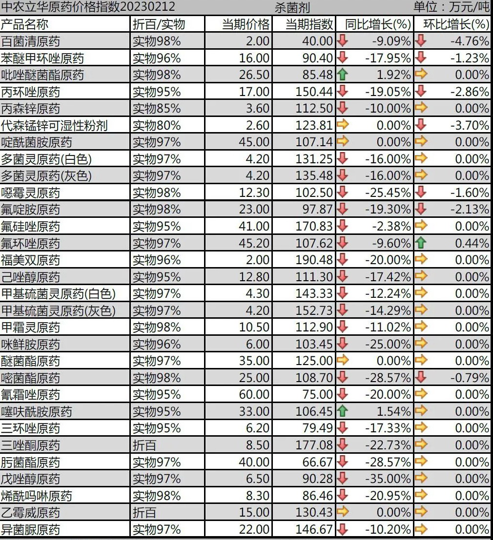 三唑類產(chǎn)品需求弱勢,產(chǎn)能過剩,廠家競爭激烈,價(jià)格逐步走低。苯醚甲環(huán)唑原藥報(bào)到16萬元/噸;丙環(huán)唑原藥報(bào)到17萬元/噸;己唑醇原藥價(jià)格報(bào)到12.8萬元/噸;戊唑醇原藥廠家報(bào)到6.5萬元/噸,競爭非常激烈;三環(huán)唑原藥原材料價(jià)格有所上揚(yáng),終端需求較弱,價(jià)格報(bào)到6.2萬元/噸;氟環(huán)唑原藥廠家排單較多,現(xiàn)貨緊張,價(jià)格報(bào)到45.2萬元/噸。