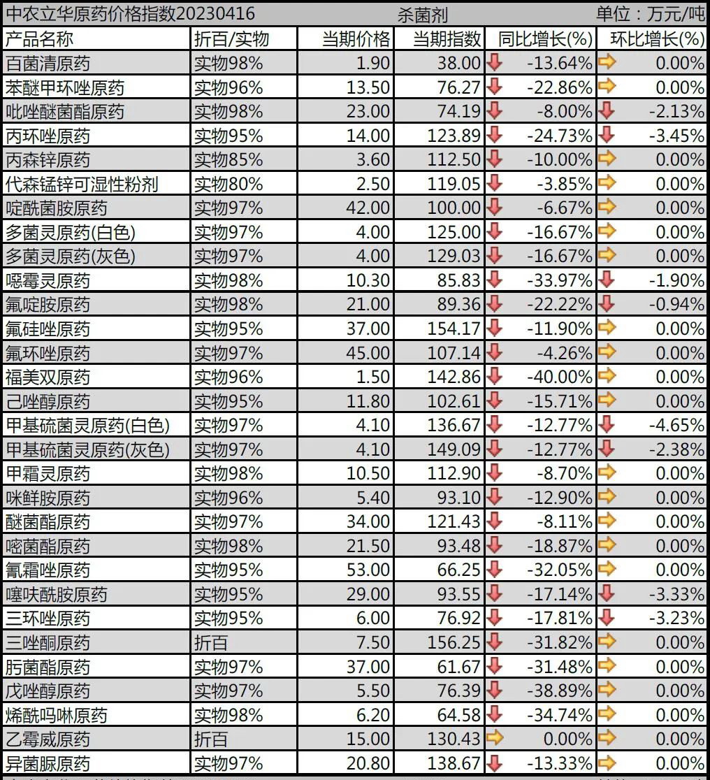 多菌靈原藥市場貨源緊張,報價在4萬元/噸;甲基硫菌靈原藥市場貨源緊張,廠家排單為主,價格報到4.1萬元/噸;福美雙原藥價格1.5萬元/噸;甲霜靈原藥價格報到10.5萬元/噸;噁霉靈原藥市場價格報至10.3萬元/噸;氟啶胺原藥目前價格報21萬元/噸;咪鮮胺原藥終端制劑競爭激烈,廠家開工率降低,市場低位橫盤,市場報價下探至5.4萬元/噸。