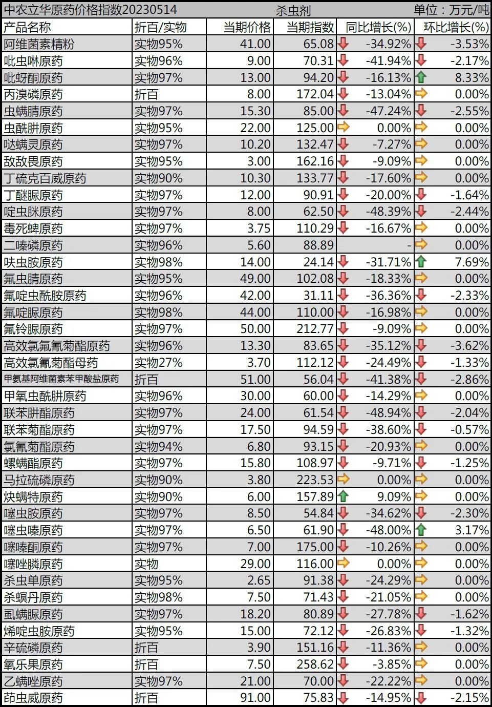 氟啶脲原藥報(bào)到44萬元/噸;氟鈴脲原藥報(bào)價(jià)50萬元/噸;虱螨脲原藥廠家競爭激烈,報(bào)到18.2萬元/噸;乙螨唑原藥報(bào)價(jià)到21萬元/噸。