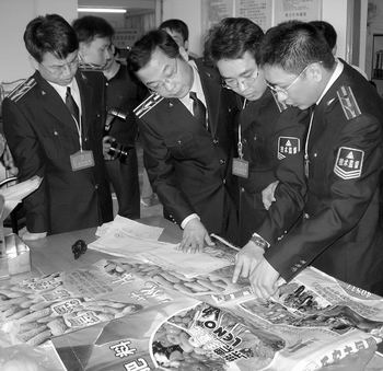 為有力促進糧食增產(chǎn)、農(nóng)業(yè)增效、農(nóng)民增收,今年以來,國家質(zhì)檢總局加大了農(nóng)資打假力度,組織了春耕農(nóng)資產(chǎn)品專項國家監(jiān)督抽查。圖為廣東省質(zhì)量技術(shù)監(jiān)督局執(zhí)法人員在查處惠州市一假冒化肥生產(chǎn)企業(yè)。