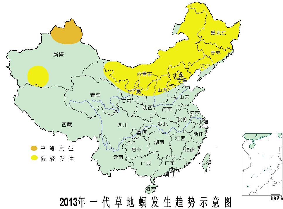 一代幼蟲(chóng)在新疆北部阿勒泰、塔城等地區(qū)中等發(fā)生,西北其他地區(qū)、華北和東北大部偏輕發(fā)生,發(fā)生面積約500萬(wàn)畝。但不排除境外蟲(chóng)源遷入造成局部嚴(yán)重發(fā)生的可能。