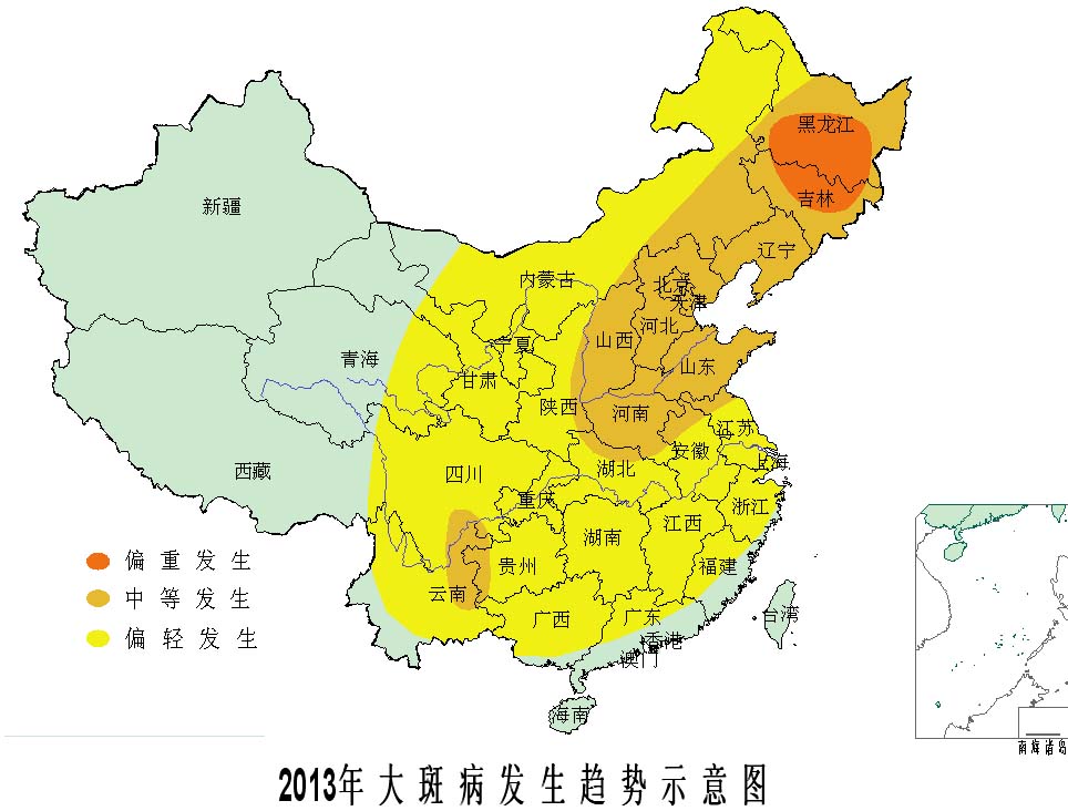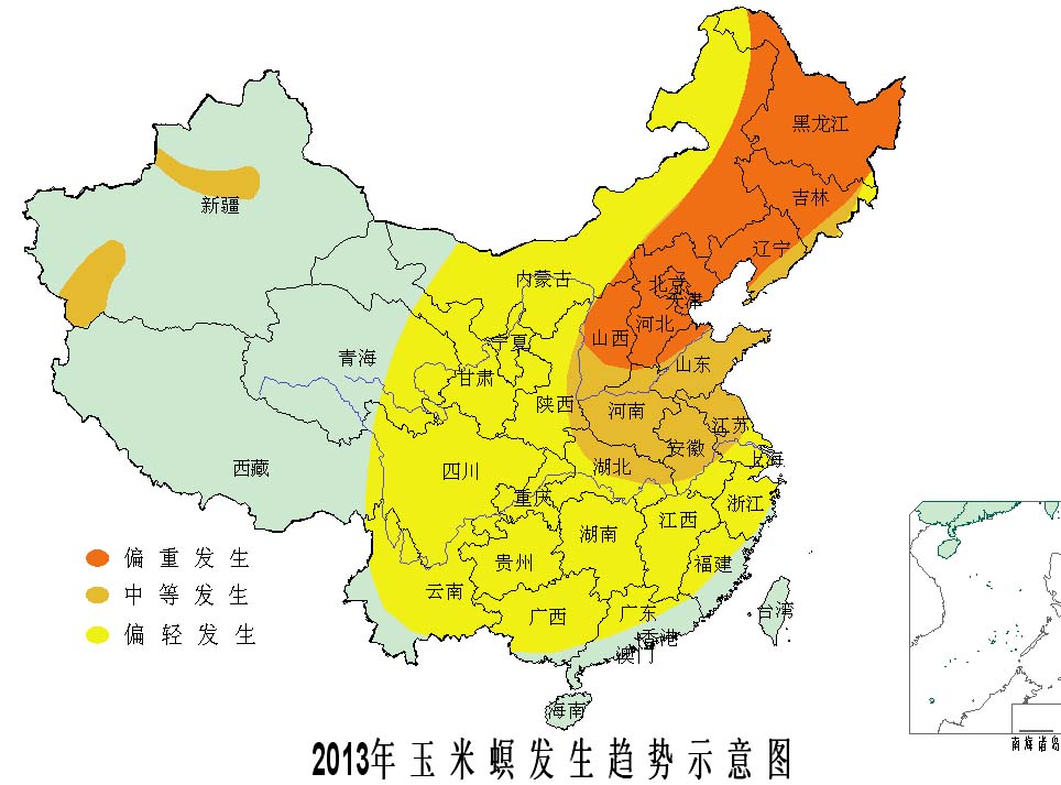 據(jù)全國農(nóng)業(yè)技術(shù)推廣服務(wù)中心會同科研、教學(xué)和推廣單位專家分析預(yù)測,2013年全國玉米病蟲害總體偏重發(fā)生,明顯重于常年,預(yù)計發(fā)生面積11.3億畝次,蟲害發(fā)生8.3億畝次,病害發(fā)生3.0億畝次;將影響全國約3億畝玉米的安全生長。其中,玉米螟、大斑病在東北、華北偏重發(fā)生,局部大發(fā)生;二、三代粘蟲在東北、華北和黃淮等地中等以上發(fā)生的可能性較大;二點委夜蛾在黃淮海中等發(fā)生,局部偏重發(fā)生。